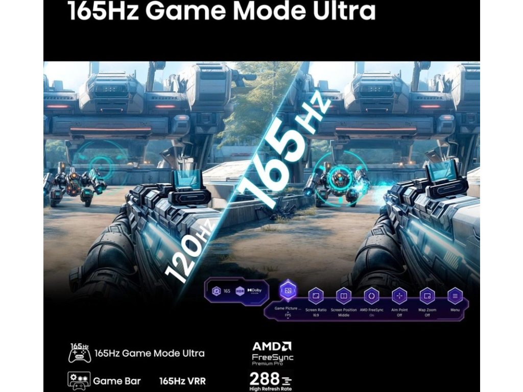 Televízor podporuje vysokú obnovovaciu frekvenciu 144 Hz a technológiu MEMC, vďaka čomu je obraz mimoriadne plynulý aj pri rýchlych scénach. Pre hráčov je určený 144Hz Game Mode Pro, FreeSync Premium a HSR 240 Hz, ktoré zabezpečujú minimálne oneskorenie a hladký herný zážitok. Podpora formátov HDR10+ a HLG prináša lepší kontrast a detail v svetlých aj tmavých scénach.
