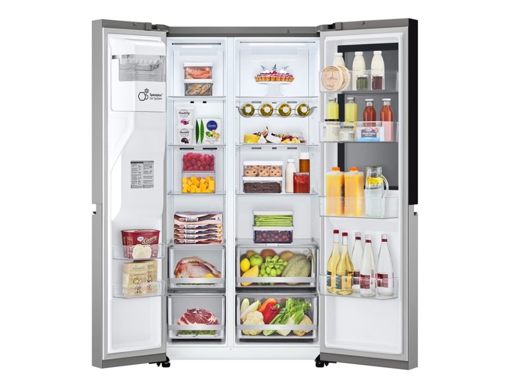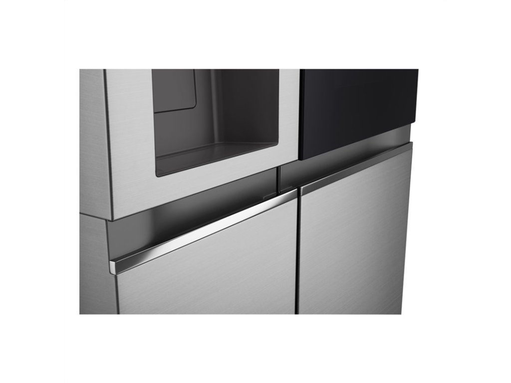 Inovatívny systém Door Cooling+ zabezpečuje rýchle a rovnomerné chladenie aj v priestore dverí, čím pomáha zachovať čerstvosť potravín. Funkcia Fresh Balancer umožňuje reguláciu vlhkosti v zásuvkách, čo je ideálne pre ovocie a zeleninu. Unikátne InstaView™ okno umožňuje nahliadnuť do vnútra chladničky jednoduchým poklopaním bez nutnosti otvárania dverí, čím sa znižujú tepelné straty. Vďaka LG ThinQ Wi-Fi je možné chladničku ovládať a monitorovať na diaľku prostredníctvom smartfónu. Rozmery spotrebiča V × Š × H: 179 × 91,35 × 73,5 cm z nej robia dominantný a funkčný prvok modernej kuchyne.