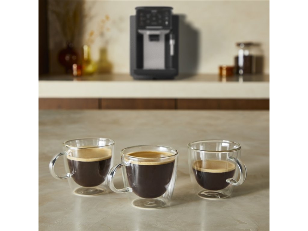 Dokonalá chuť je zaručená vďaka príprave 4 jedinečných kávových nápojov, ktoré sú optimalizované technológiou Barista Inside pre maximálnu kvalitu a vyváženú arómu. Každý nápoj je nastavený tak, aby ponúkol ideálny pomer extrakcie, teploty a intenzity pre skutočný pôžitok z kávy. Jednoduché použitie zabezpečuje priamy výber nápojov a rýchly prístup k všetkým nastaveniam, vďaka čomu je ovládanie intuitívne a pohodlné. Jednoduchá personalizácia umožňuje nastaviť objem a intenzitu nápoja presne podľa vašich preferencií. Systém navyše umožňuje uložiť až 2 obľúbené nápoje, ktoré sú následne dostupné pre rýchlu prípravu jediným dotykom. Vďaka tomu si každý člen domácnosti môže vychutnať svoju ideálnu šálku kávy bez zdĺhavého nastavovania.
