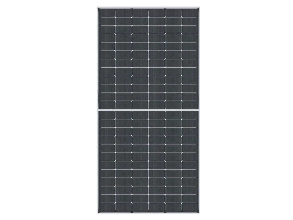 Strieborný hliníkový rám dodáva panelu elegantný a nadčasový vzhľad, pričom zároveň zvyšuje jeho mechanickú odolnosť voči poveternostným vplyvom. Modul je navrhnutý tak, aby spĺňal náročné požiadavky na pevnosť, stabilitu a estetiku.