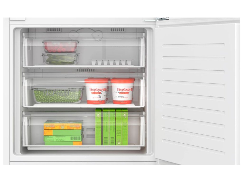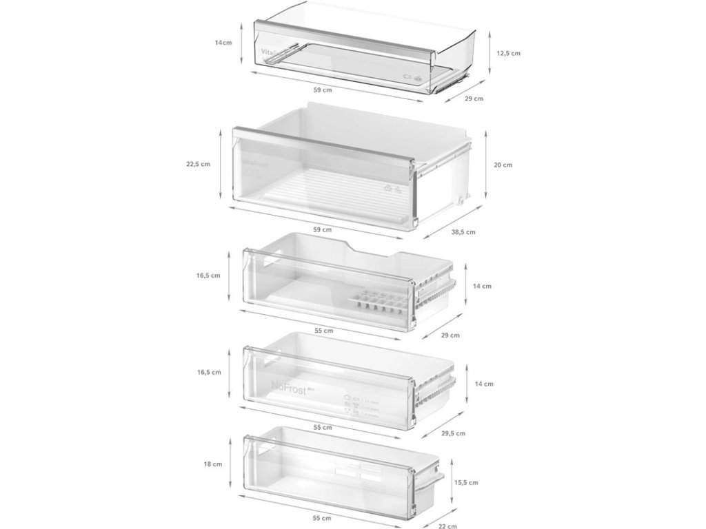 Beznámrazová technológia No Frost účinne zabraňuje tvorbe námrazy, čím eliminuje potrebu manuálneho odmrazovania a zabezpečuje stálu účinnosť chladenia. Chladnička pracuje s dvoma samostatnými chladiacimi okruhmi, ktoré umožňujú presné a nezávislé riadenie teploty v chladiacej aj mraziacej časti. Ročná spotreba energie 256 kWh/365 dní predstavuje vyvážený pomer medzi výkonom a úspornosťou. Prehľadné ovládanie zabezpečuje LED displej, ktorý umožňuje jednoduché nastavenie všetkých funkcií.