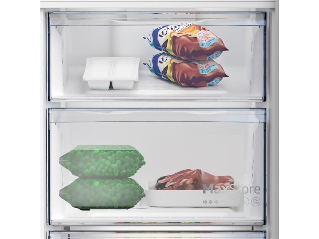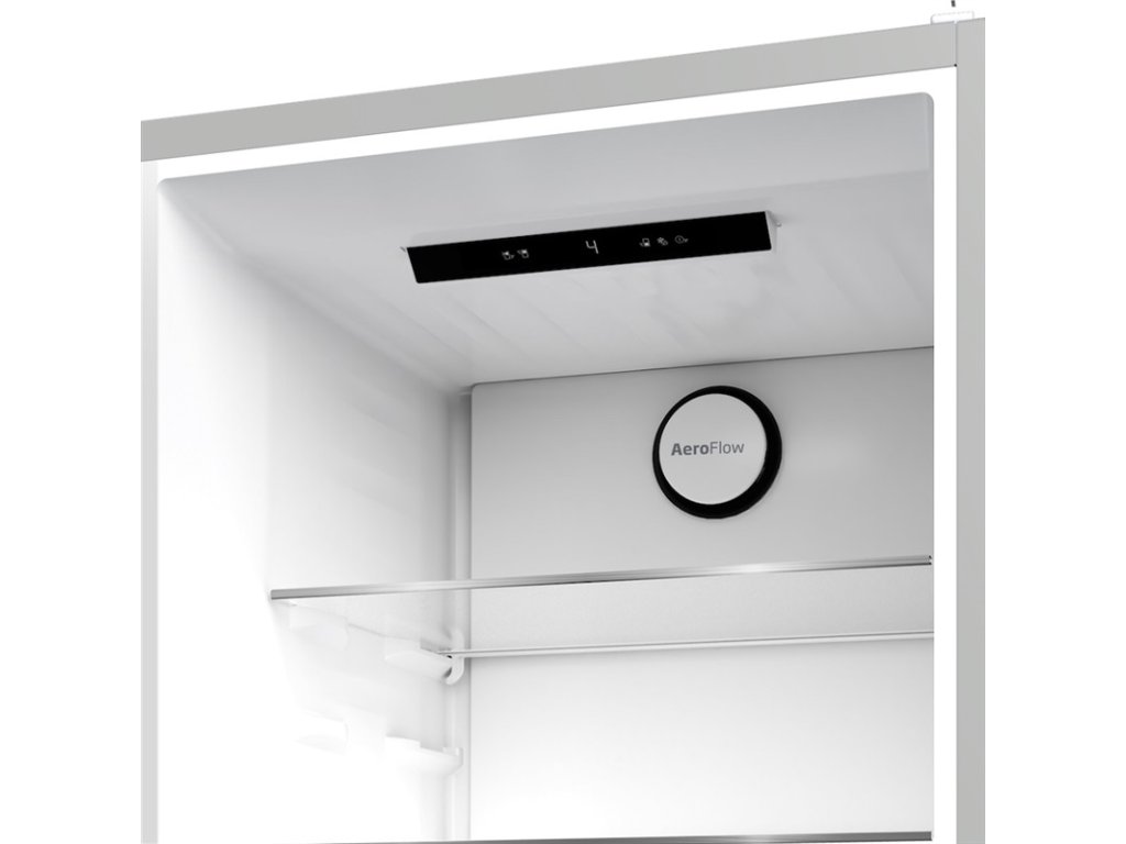 Chladnička spoľahlivo funguje v rôznych podmienkach vďaka klimatickej triede SN, T. Pokročilý systém AeroFlow zabezpečuje rovnomernú cirkuláciu studeného vzduchu v celom vnútornom priestore, čím udržiava stabilnú teplotu na všetkých policiach. Technológia NeoFrost zabraňuje tvorbe námrazy a oddeľuje chladiaci a mraziaci okruh, čo prispieva k lepšej hygiene a dlhšej čerstvosti potravín. Inovatívna funkcia HarvestFresh simuluje prirodzený denný cyklus svetla a pomáha zachovať vitamíny a výživové hodnoty ovocia a zeleniny.