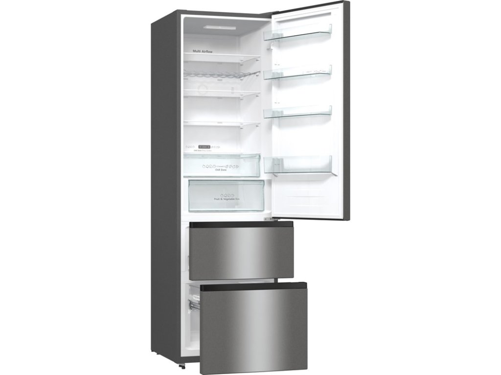 Chladnička je prispôsobená rôznym podmienkam vďaka klimatickej triede SN, N, ST, T, čo zaručuje spoľahlivý chod v širokom rozsahu okolných teplôt. Beznámrazová technológia NoFrost Plus účinne zabraňuje tvorbe ľadu a eliminuje potrebu manuálneho odmrazovania. Systém Multi Air Flow zabezpečuje rovnomernú cirkuláciu studeného vzduchu v celom vnútornom priestore, čím udržiava stabilnú teplotu na všetkých policiach a predlžuje čerstvosť potravín.