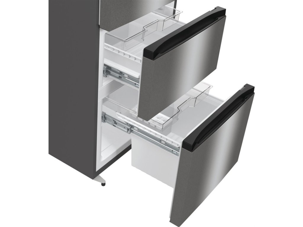 Táto moderná chladnička s mrazničkou dole je navrhnutá pre pohodlné a efektívne skladovanie potravín v každodennej domácnosti. Patrí do energetickej triedy D, čo predstavuje vyvážený pomer medzi úspornou prevádzkou a stabilným chladiacim výkonom. Veľkorysý vnútorný priestor ponúka objem chladničky 255 litrov a objem mrazničky 113 litrov, vďaka čomu je ideálna pre rodiny aj náročnejších používateľov. Počas prevádzky dosahuje nízku hlučnosť iba 36 dB, takže je vhodná aj do otvorených kuchýň prepojených s obývacím priestorom.