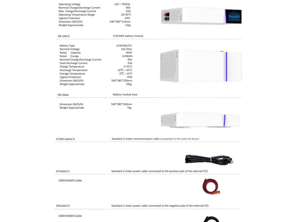 Zhrnutie: Modul batérie Deye GB-L 4,09 kWh je spoľahlivé riešenie pre moderné skladovanie energie, ktoré spája bezpečnosť, inteligentné funkcie a vysokú odolnosť. Je ideálny pre používateľov, ktorí hľadajú dlhodobo stabilný a efektívny energetický systém.