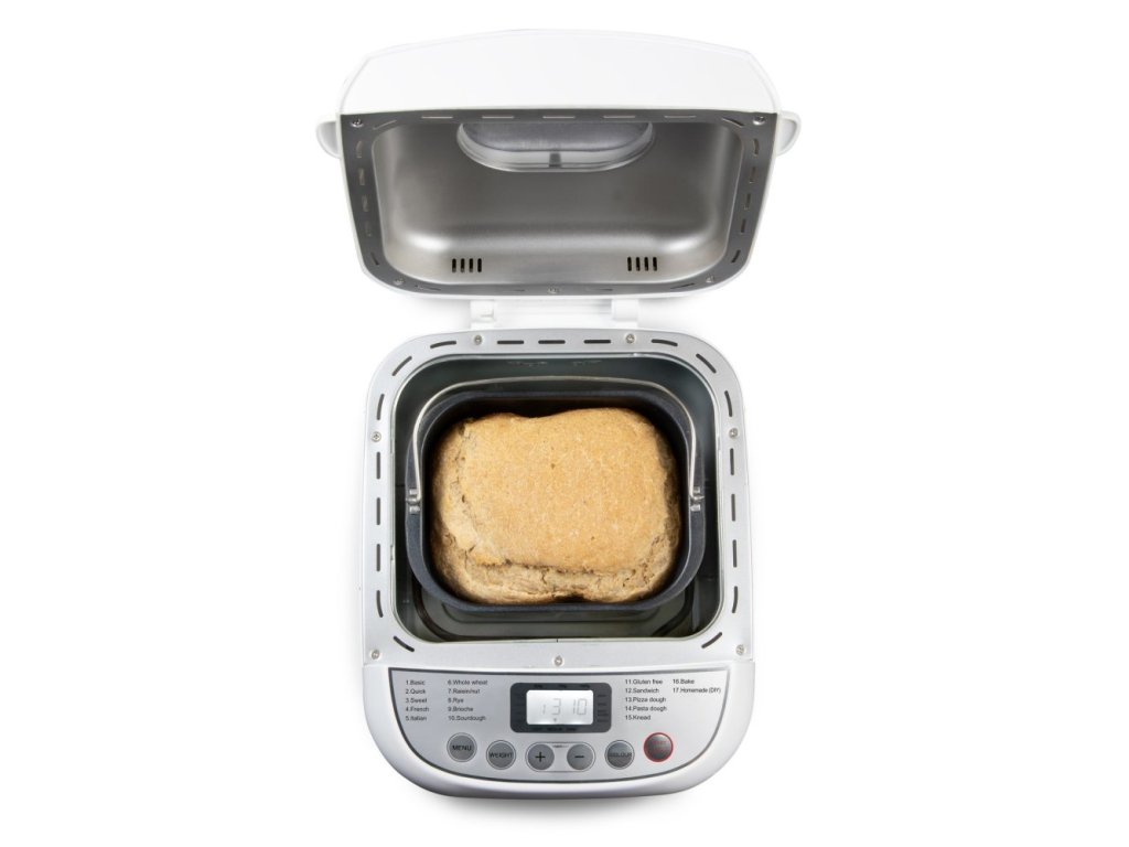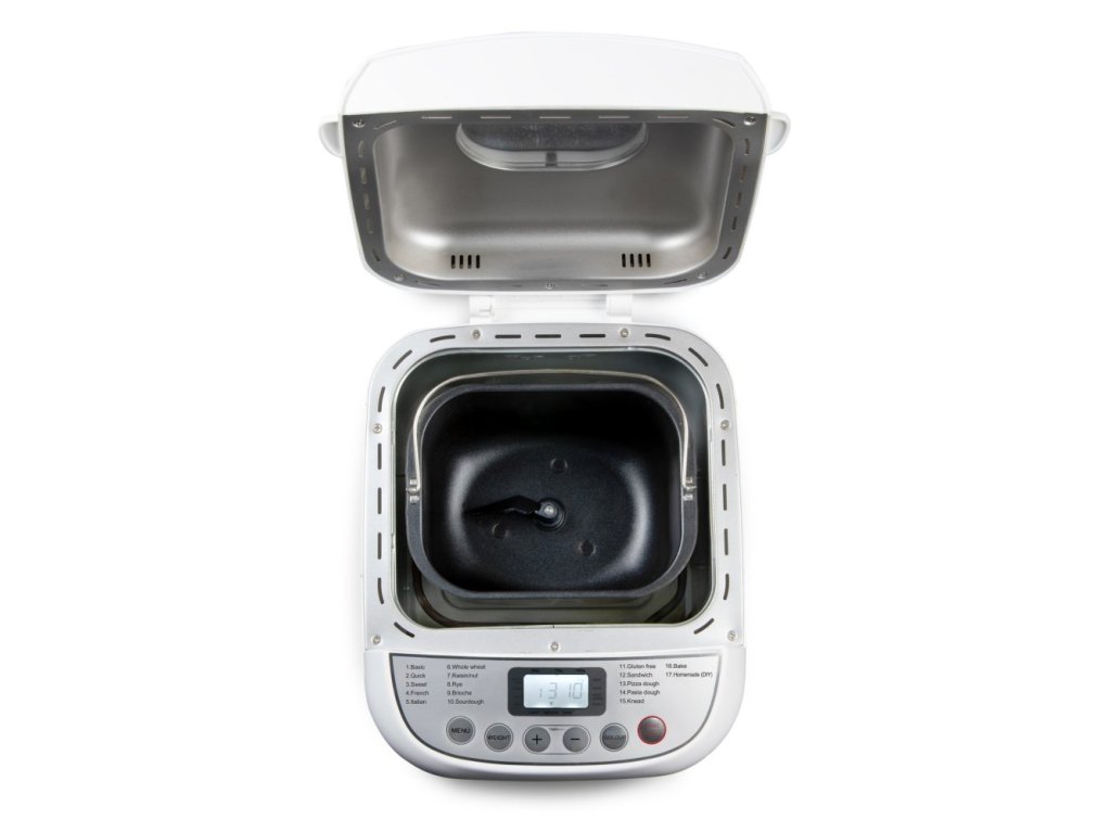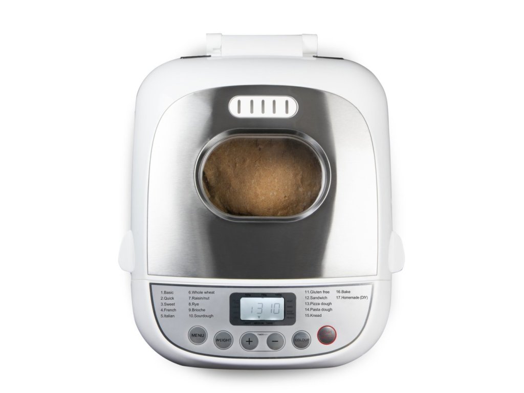 Plne automatická domáca pekáreň so 17 automatickými programami. Pekáreň sama cesto uhnite, pri správnej teplote vykysne a sama pridá v správny čas aj ďalšie extra prísady. Na koniec pečenia vás pekáreň upozorní zvukovým signálom a pokiaľ ju nevypnete, tak pre vás ešte hodinu po dopečení udrží chlieb teplý, aby ste ho aj neskôr vybrali ako čerstvo upečený. Ak si nevyberiete žiadny z prednastavených programov, môžete si detailne nastaviť vlastný automatický program. Pri tomto programe si navolíte všetky fázy od miesenia až po udržiavanie teploty po dopečení s minútovou presnosťou. Páči sa vám táto pekáreň, ale využili by ste väčší? Rovnako vybavený model v dvojhákovom prevedení v čiernej farbe nájdete pod označením Kľúčové vlastnosti pekárne Typ prístroja: domáca pekáreň Počet hnetacích hákov: 1 Hmotnosť chleba: 500 - 750 - 1000 g Príkon: 600 W 17 automatických programov vrátane ... programu pre bezlepkové pečenie vlastného plne nastaviteľného programu programu samostatné miesenie programu samostatné pečenie automatického programu prípravy cesta (uhnetenie a vykysnutie) Ďalšie užitočné vlastnosti Voľba stupne opečenia kôrky chleba v 3 krokoch (svetlá, tmavá, stredná) Odložený štart až o 15 hodín Automatické udržiavanie teplého chleba po dopečení (60 minút) Zvukový signál po ukončení programu Zvukové potvrdenie stlačenia tlačidla Pamäťová funkcia pre automatické pokračovanie v programe po prerušení prúdu až na 10 minút Tepelne izolované veko so skleneným priehľadom pre ľahkú kontrolu priebehu kysnutia i pečenia Nerezové tepelne izolované madlo pre ľahkú manipuláciu s vekom Nerezový ovládací panel s chrómovanými tlačidlami Kompletne nerezové telo prístroja Materiál nádoby: teflón Zoznam programov Základné (basic) Rýchly (quick) Sladký (sweet) Francúzsky (French) Taliansky chlieb (Italian) Celozrnný (whole wheat) Hrozienka / orechový chlieb (raisin/nut) Ražný, raž (rye) Brioška Kvások (sourdough) Bezlepkový (gluten free) Sendvič Cesto na pizzu (pizza dough) Cesto na cestoviny (pasta dough) Hnetenie (knead) Pečenie (bake) Domáci vlastný chlieb Homemade (DIY) Rozmery a hmotnosti Rozmery prístroja (š x h x v): 24,8 x 29,6 x 36 cm Hmotnosť prístroja: 4,2 kg Rozmery hnetacej nádoby - vnútorné (š x h x v): 17,2 x 13,4 x 13,6 cm Veľkosť LCD displeja (š x h x v): 3,9 x 2,1 cm Rozmery balenia (š x h x v): 37,2 x 30,5 x 32,5 cm Hmotnosť balenia: 5,6 kg Dĺžka prívodného kábla: 105 cm Balenie obsahuje Domáca pekáreň B3976 Nádoba na chlieb Hnetací hák Odmerka veľkosti lyžice Odmerka na vodu Hák na vyťahovanie hnetača z pečiva Návod na použitie