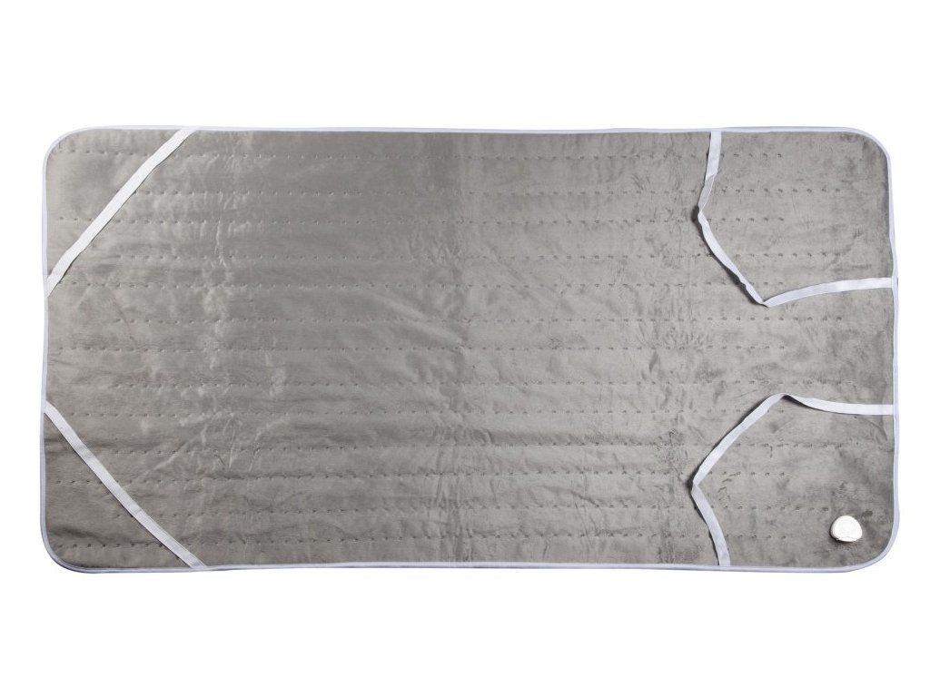 Elektrická deka ideálne na jedno lôžko na uchytenie na matrac pod prestieradlo, alebo ako vyhrievaná podložka priamo pod telo. Dečka vás príjemne zahreje pri zaspávaní a po nastavenej dobe sa sama vypne, alebo si s ňou rýchlo vyhrejte studené lôžko, než pôjdete spať. O bezpečnosť sa postará automatické vypnutie aj ochrana proti prehriatiu. Určenie deky: zahriatie lôžka a tela Rozmery deky (š x d): 80 x 150 cm Počet teplôt: 6 Príkon: 100 W Materiál: fleece / mikrovlákno Farba: sivá Veľmi rýchle a rovnomerné nahrievanie celej plochy Nastaviteľné automatické vypnutie po 2, 4 alebo 6 hodinách Popruhy na uchytenie na matrac Odnímateľný sieťový kábel s ovládačom Jednoduché nastavenie ovládačom s podsvieteným číselníkom Extra jemný microfleece Možno prať ručným praním, alebo podobným programom v práčke na 30 °C Ochrana proti prehriatiu Dĺžka prívodného kábla s ovládačom: 240 cm Dĺžka kábla od zásuvky k ovládaču: 160 cm Rozmery balenia (š x h x v): 28,8 x 9,5 x 36,8 cm Hmotnosť balenia: 1,48 kg Hmotnosť deky s káblom: 1,18 kg