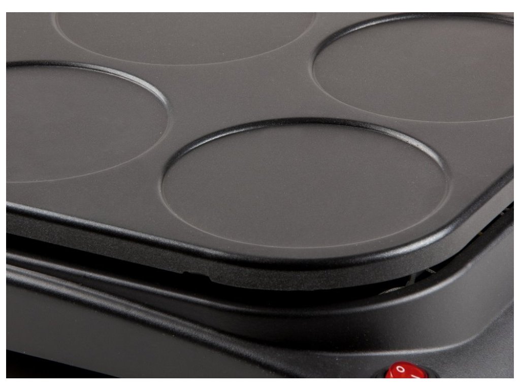 Elektrický lievanečník Príkon: 1000 W Na 6 lievancov Priemer platničiek: 11,5 cm Nepriľnavý povrch ILAG Corflon Ultra Vrátane naberačky - presne na jeden lívanček Ochrana proti prehriatiu Vhodné aj na prípravu zemiačikov či menších omeliet Praktický úložný priestor pre sieťový kábel Sieťový vypínač Dĺžka prívodného kábla: 100 cm Farba: čierna Rozmery balenia (š x h x v): 51 x 12 x 35 cm Hmotnosť balenia: 2,7 kg Rozmery prístroja (š x h x v): 47,5 x 30 x 9 cm Hmotnosť prístroja: 2 kg
