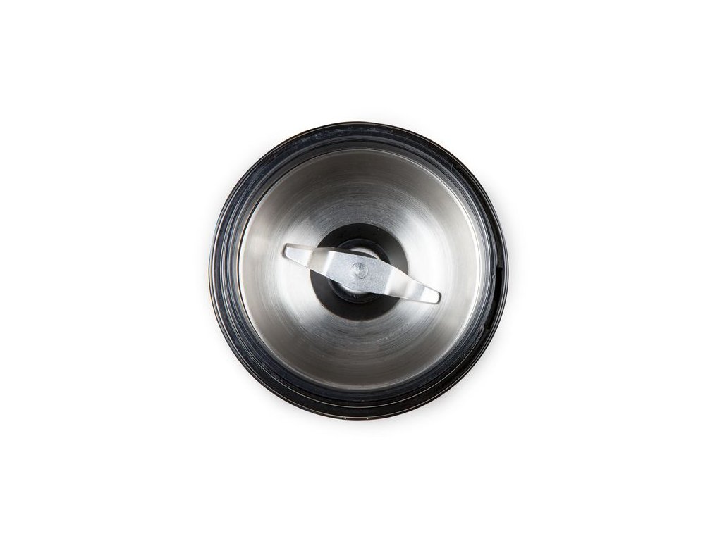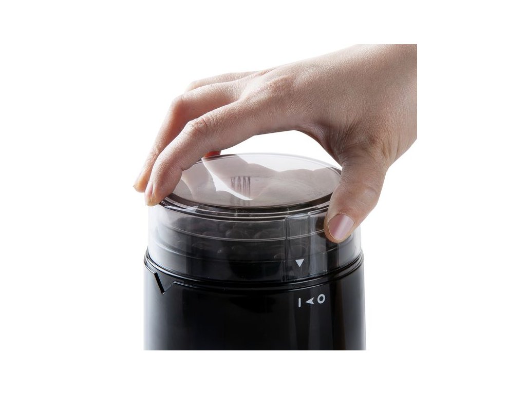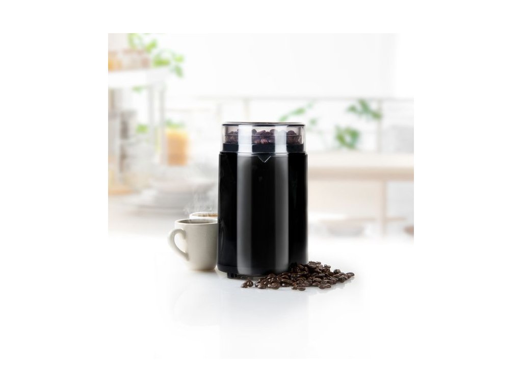 Elektrický mlynček na kávu s vyberateľnou nerezovou násypkou na prípravu až 70 g kávy na jedno mletie. O mletie sa stará ostrý nerezový nôž tesne kopírujúci dno a steny nádoby tak, aby čo najprecíznejšie roztrieštil kávové zrná. Vyberateľnú násypku môžete ľahko vysypať a aj s nožom udržiavať vždy čistú. Prístroj je možné spustiť iba s nasadeným priehľadným vekom vďaka čomu sa použitie stáva veľmi bezpečné. Typ mlynčeka: elektrický trieštivý Kapacita násypky: 70 g Nastavenie hrubosti mletia: iba dĺžkou doby mletia * Príkon: 150 W Počet otáčok: 22000 ot./min. Vyberateľná nerezová násypka na kávu uľahčujúca presypanie namletej kávy Ostrý nerezový nôž Priehľadné veko uľahčujúce okamžitú kontrolu hrubosti namletej kávy Bezpečnostná poistka umožňujúca mletie iba s nasadeným vekom Spustenie mletia jednoduchým pootočením veka Veľmi ľahké čistenie vďaka vyberateľnej násypke Protišmykové nožičky zabraňujúce pošmyknutiu prístroja po pracovnej doske Dĺžka prívodného kábla: 99 cm * Čím dlhšie necháte prístroj mlieť, tým bude namletá káva jemnejšia. Hrubšie mletá káva môže byť použitá na prípravu v moka kanvičkách, stredne namletá je vhodná pre kávovary/prekvapkávače a jemne mletá káva je najvhodnejšia pre automatické espresso kávovary. Kávu vždy melte čerstvo a mletie si prispôsobte podľa svojich preferencií, tak aby sa hodilo na konkrétnu prípravu. Rozmery prístroja (Ø x v): 11 x 18,2 cm Hmotnosť prístroja: 0,8 kg Rozmery balenia (š x h x v): 13 x 13 x 21 cm Hmotnosť balenia: 0,96 kg