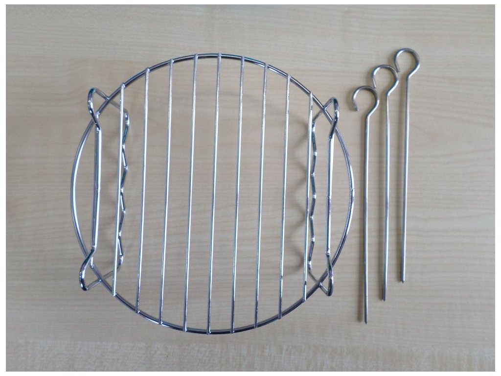 Originální grilovací mřížka k horkovzdušným fritézám DOMO DO509FR a DOMO DO469FR. Mřížku lze použít i do běžné horkovzdušné trouby, nebo do mikrovlnné trouby s funkcí ohřevu horkým vzduchem, nebo grilem. Balení je včetně 3 ks grilovacích jehel. Jehly lze zavěsit do horní části mřížky do připraveného vybrání. Vzdálenost jehly od mřížky je tak 3,5 cm. Rozměry mřížky (průměr x výška): 18,5 x 2,8 (4,8) cm Délka grilovací jehly: 15,5 cm (bez zakulaceného konce) Povrchová úprava: chrom
