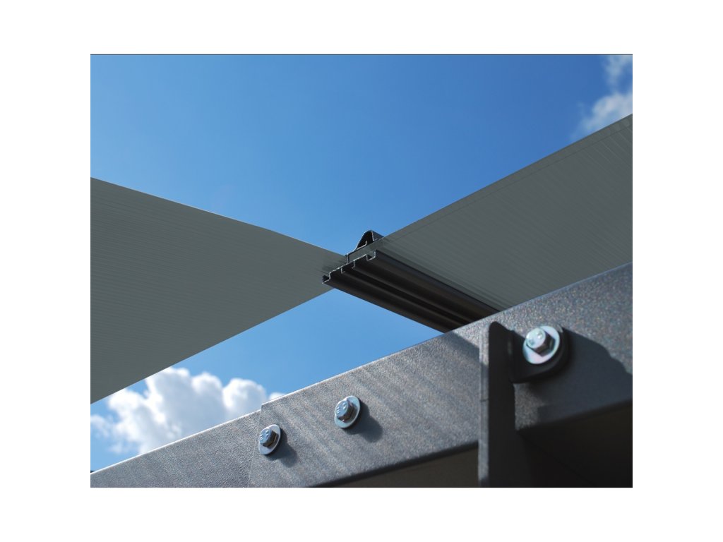 Unikátny systém nasúvania strešných panelov bez dodatočného spojovacieho materiálu zaručuje dokonalú tesnosť, jednoduchú montáž a zároveň eliminuje problémy s tepelnou rozťažnosťou materiálu. Hliníkový rám s galvanicky ošetrenými kovovými prvkami je chránený práškovou farbou, vďaka čomu je vysoko odolný voči korózii. Prístrešok je možné doplniť o LED osvetlenie.