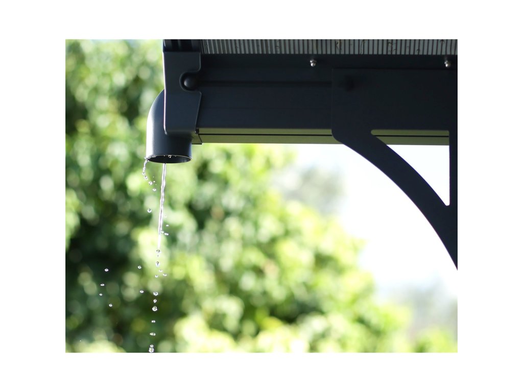 Široký a vysoký vstup zabezpečuje bezpečný a pohodlný priechod. Prístrešok nevyžaduje žiadnu dodatočnú údržbu a jeho čistenie je jednoduché – postačí dážď alebo bežné opláchnutie vodou. Je ideálny nielen na parkovanie automobilu, ale aj ako zastrešenie ihriska, oddychového posedenia či iných vonkajších priestorov. Integrované odkvapy sa starajú o bezpečné zachytávanie a odvádzanie dažďovej vody.