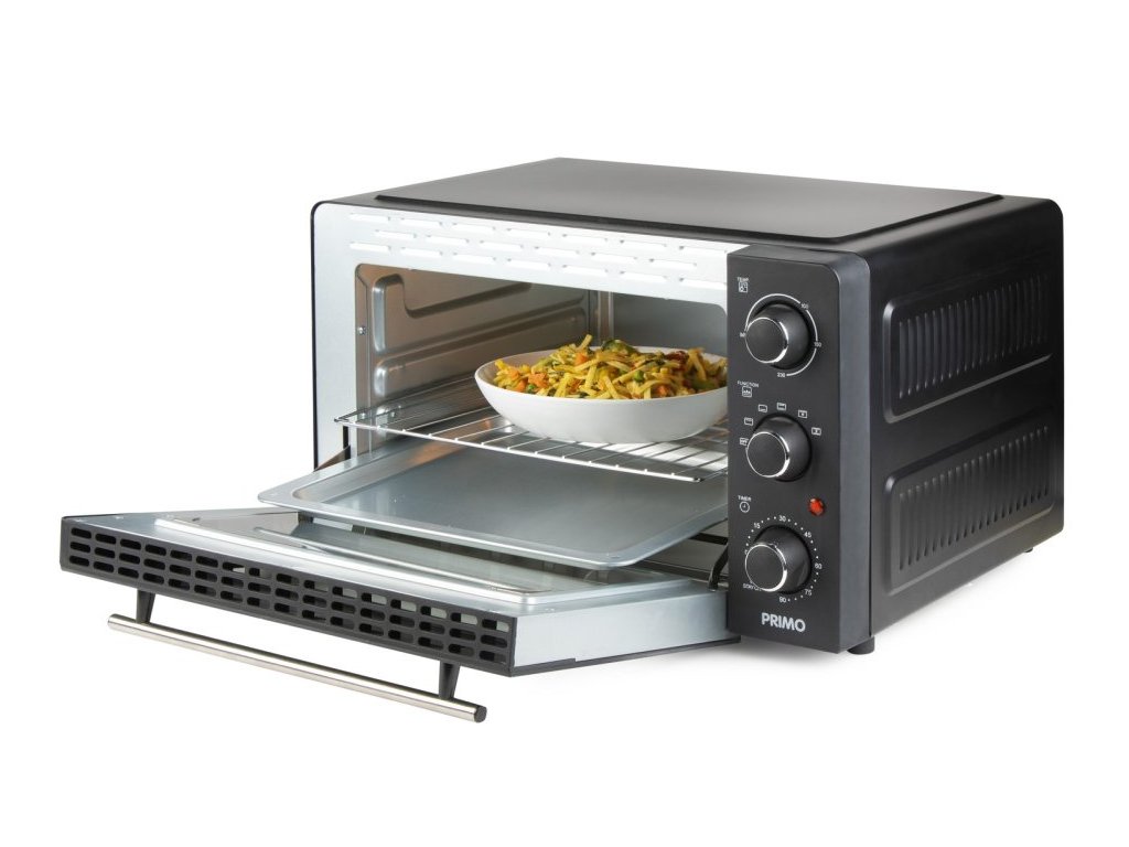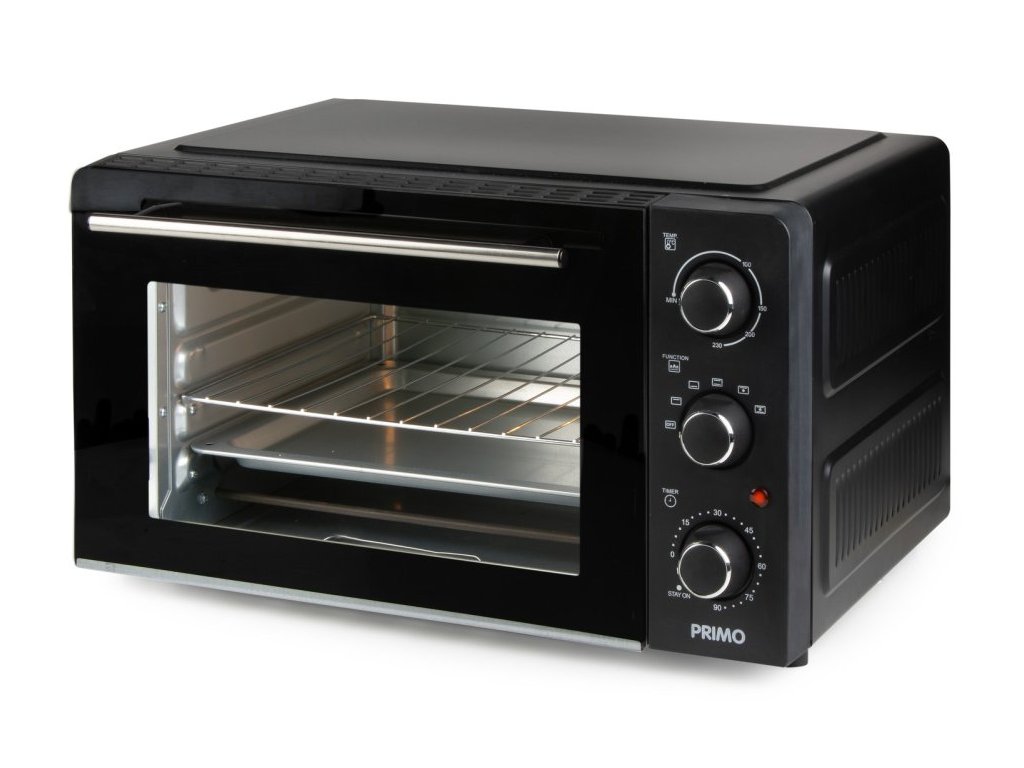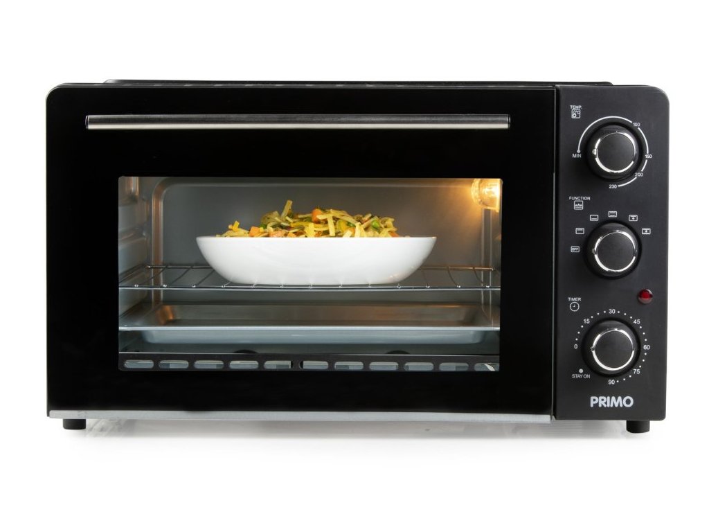 PRIMO PR254OV je volně stojící horkovzdušná trouba s objemem 28 litrů. Troubu lze využívat ve 4 různých režimech: horkovzduch, horní ohřev, spodní ohřev a horní a spodní ohřev. Pomocí termostatu si můžete nastavit pečení až do 230 °C. Díky časovači můžete perfektně ovládat dobu pečení a vnitřní osvětlení usnadňuje sledování celého procesu. Základní parametry trouby: Typ trouby: elektrická mini trouba Způsob umístění: volně stojící Objem: 28 l Příkon: 1500 W Barva: černá Funkce trouby: Nastavení teploty pečení až do 230 °C Nastavitelná doba pečení až na 90 min Zvukový signál po skončení pečení Funkce horkého vzduchu (horkovzduchu) Funkce samostatného spodního ohřevu Funkce samostatného horního ohřevu Funkce horního a spodního ohřevu společně Příslušenství v balení: Pečící plech - (š x h x v) - 30 x 28,5 x 1,9 cm Pečící rošt (mřížka) Plechový tácek na dno trouby zachytávající nečistoty, usnadňující čištění Ostatní užitečné vlastnosti: Jednoduché a přehledné manuální ovládání všech funkcí Světelná kontrolka zapnutí Plech, nebo rošt lze umístit do 3 různých výšek Tepelně izolovaný "Cool Touch" povrch Dobře čistitelný hladký vnitřní povrch Vysoce kvalitní topná tělesa Rozměry balení a přístroje: Rozměry přístroje (š x h x v): 52,4 x 42,7 x 30 cm Váha přístroje: 7,7 kg Délka přívodního kabelu: 90 cm Rozměry balení (š x h x v): 56 x 46 x 35 cm Hmotnost balení: 9,6 kg