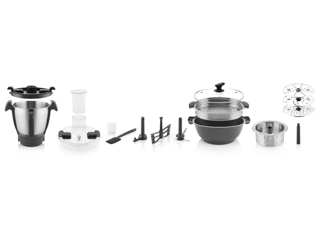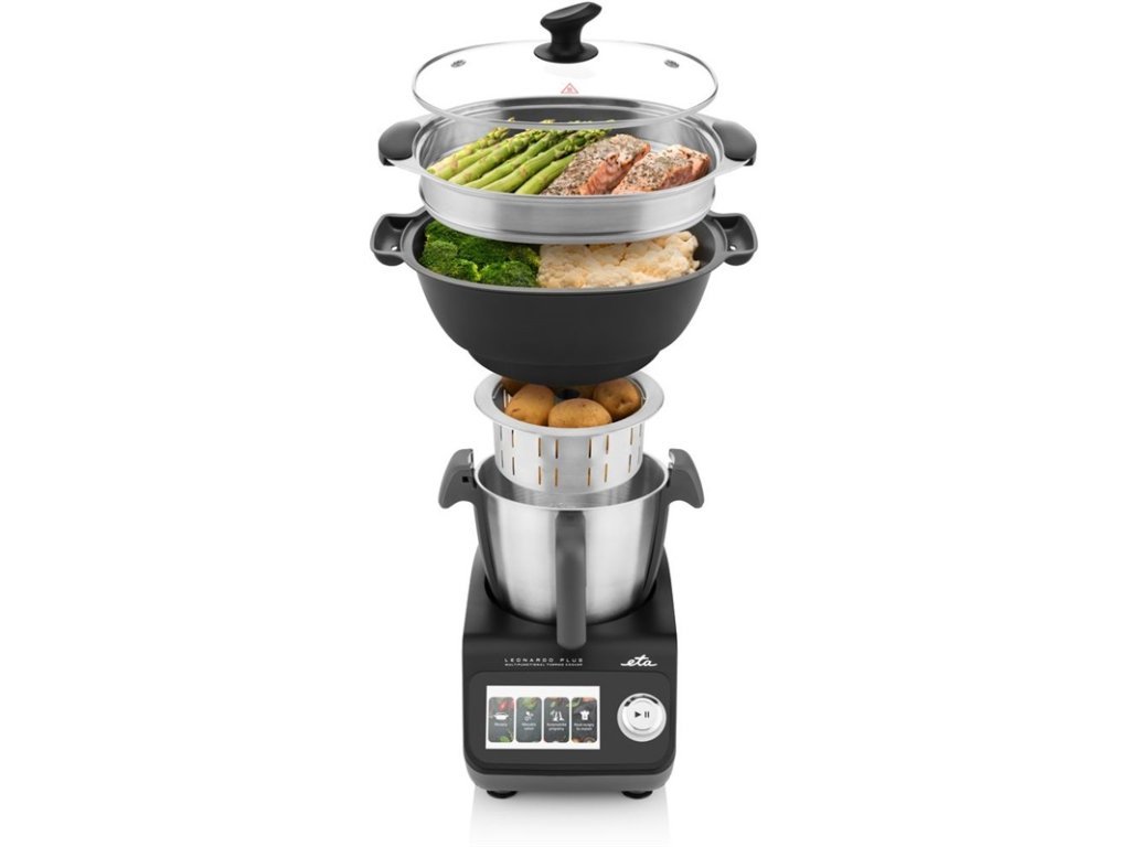 Moderný multifunkčný kuchynský robot ponúka vysoký výkon a inteligentné funkcie pre každodenné varenie. Disponuje príkonom 1000 W (vykurovacie teleso) a 600 W (mixovanie), čo umožňuje efektívne varenie aj spracovanie surovín. Odolná nerezová nádoba s objemom 3,5 l je vhodná aj na umývanie v umývačke riadu. Ovládanie zabezpečuje prehľadný dotykový TFT displej, ktorý zjednodušuje výber funkcií a receptov. Vďaka WiFi pripojeniu je možné priebežne aktualizovať vložené recepty online. Zariadenie je vybavené zabudovanou váhou pre presné dávkovanie surovín. Ponúka plynulú reguláciu otáčok v rozsahu 125–5000 ot./min. a funkciu Pulse. Teplotu je možné nastaviť v rozmedzí 37–130 °C, čo umožňuje široké spektrum kulinárskych techník.