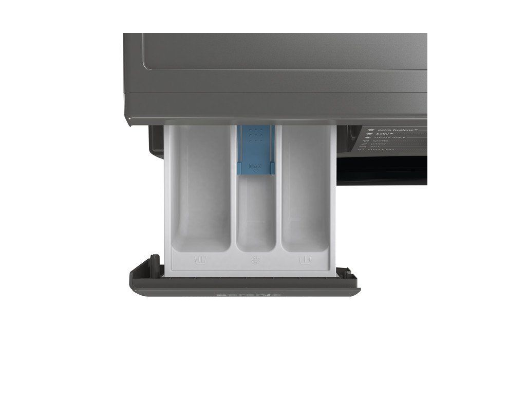 Nechýba ani detská poistka pre bezpečné používanie v domácnosti s deťmi. Práčka je vyhotovená v elegantnej čiernej farbe a jej rozmery sú 85 × 59,5 × 54 cm (V × Š × H), takže sa zmestí do väčšiny kúpeľní alebo práčovní.