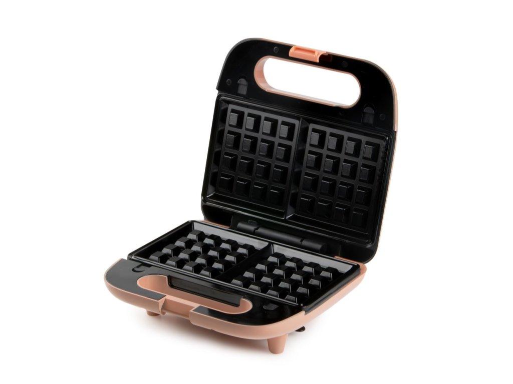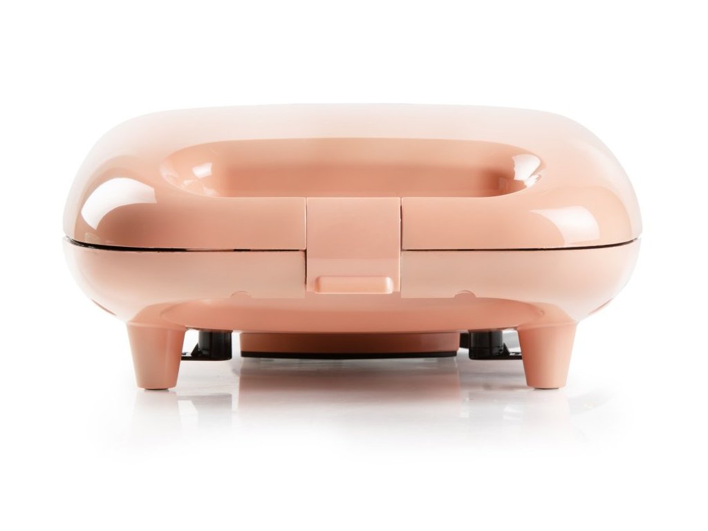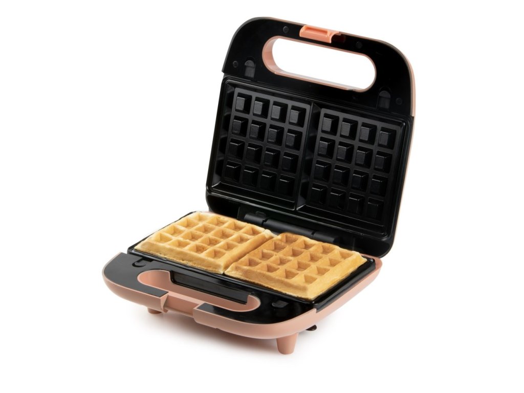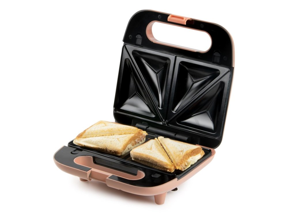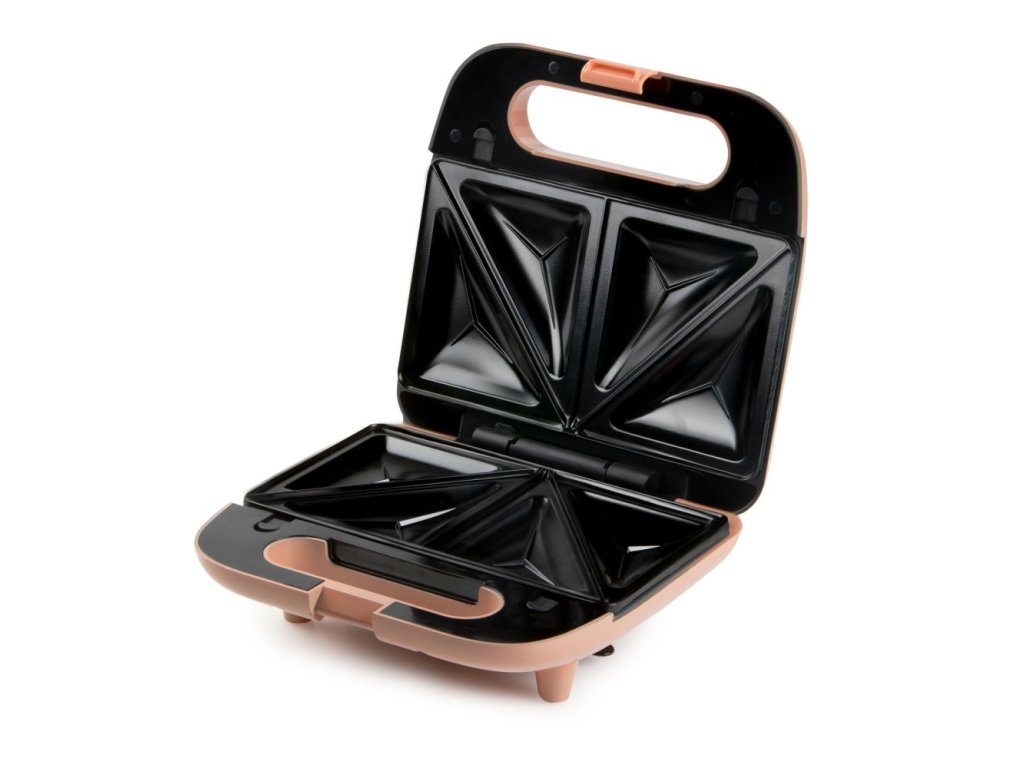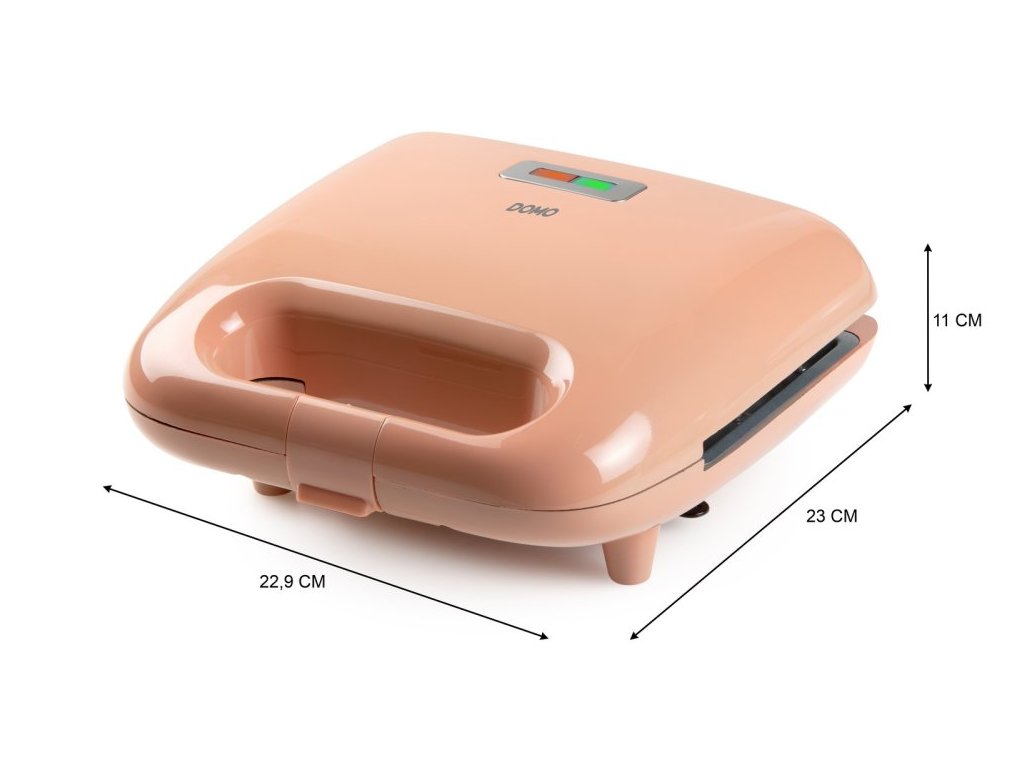 Toustovač s výmennými doskami urobí radosť každému kto si rád pochutí na trojuholníkových sendvičoch a chrumkavých vafliach. Nepriľnavý povrch dosiek na pečenie zabráni nechcenému pripaľovaniu a uľahčí ich čistenie. Správnu teplotu nahriatia signalizuje kontrolka nahrievania. Typ prístroja: toustovač a vaflovač 5v1 Príkon: 750 W Farba: lososová 2 sady dosiek na pečenie: forma 2 trojuholníkové sendviče (na chlieb až 11x13 cm) forma 2 vafle (10,5x11,8 cm) Nepriľnavý povrch Kontrolka zapnutia a kontrolka nahriatia Dosky na pečenie možno ľahko vybrať a ľahko umyť pod vodou Poistka proste spustenie bez vložených dosiek na pečenie Protišmykové nožičky Zámok veka pre ľahké uskladnenie vo zvislej polohe Konzola na zmotanie prívodného kábla Dĺžka prívodného kábla: 82 cm Rozmery balenia (š x h x v): 25,4 x 14,6 x 29 cm Hmotnosť balenia: 2,3 kg Rozmery prístroja (š x h x v): 23 x 22,2 x 11 cm Hmotnosť prístroja: 1,8 kg