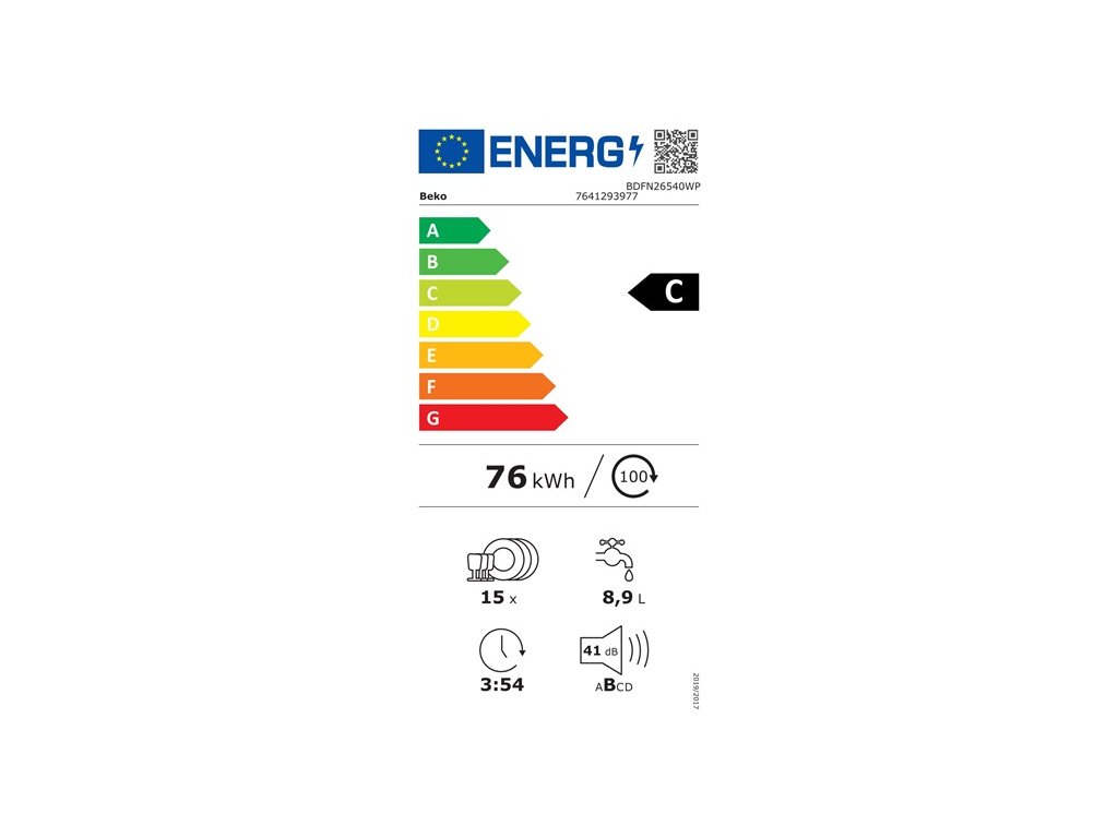 Táto moderná umývačka riadu je navrhnutá tak, aby poskytovala maximálny komfort, vysokú účinnosť umývania a úspornú prevádzku v každodennej domácnosti. Spotrebič patrí do energetickej triedy C, čo znamená efektívne využívanie energie pri zachovaní spoľahlivého výkonu. Vďaka veľkej kapacite na 15 súprav riadu je ideálnou voľbou aj pre väčšie rodiny alebo domácnosti s častým varením.