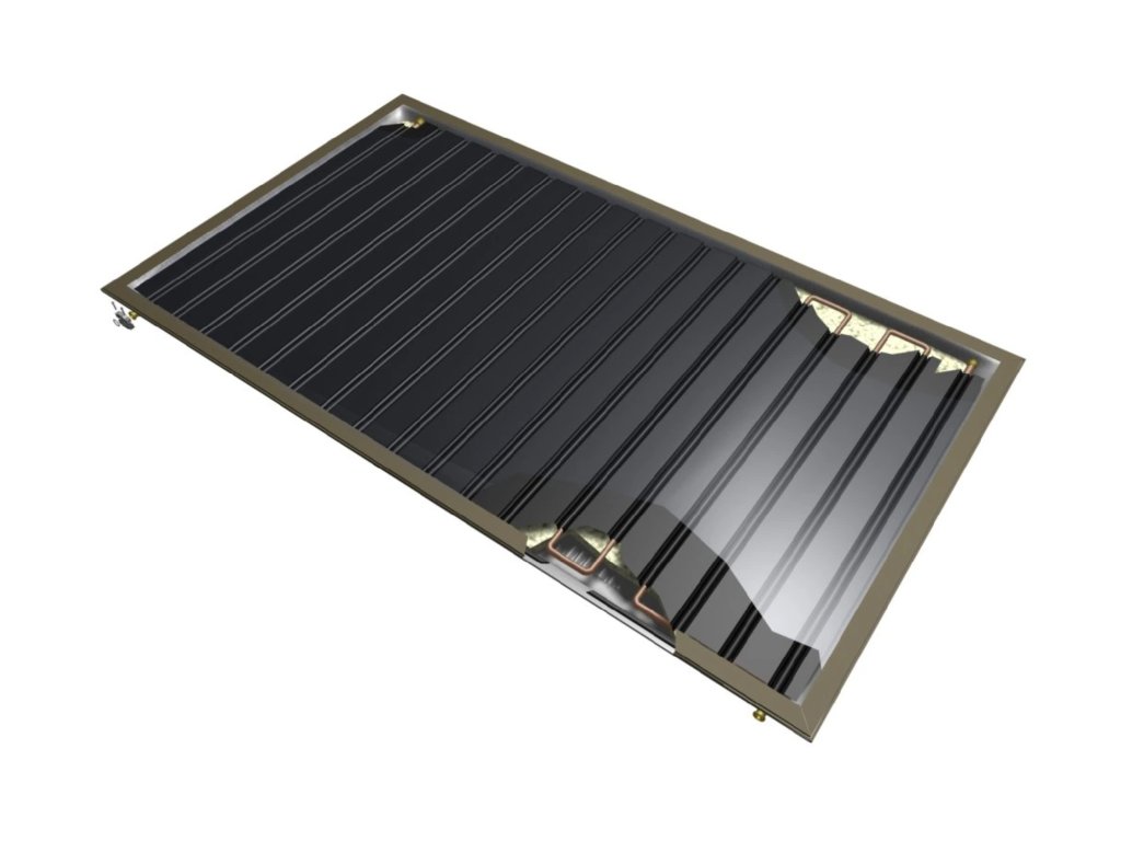 Základ kolektora tvorí kompaktná lisovaná vaňa z AL-MG plechu, v ktorej je upevnené bezpečnostné solárne sklo pomocou hliníkových eloxovaných profilov. Absorbér je z tvarovaného hliníkového plechu so selektívnou konverznou vrstvou, ktorá obopína meander z medenej rúrky (patentované riešenie).