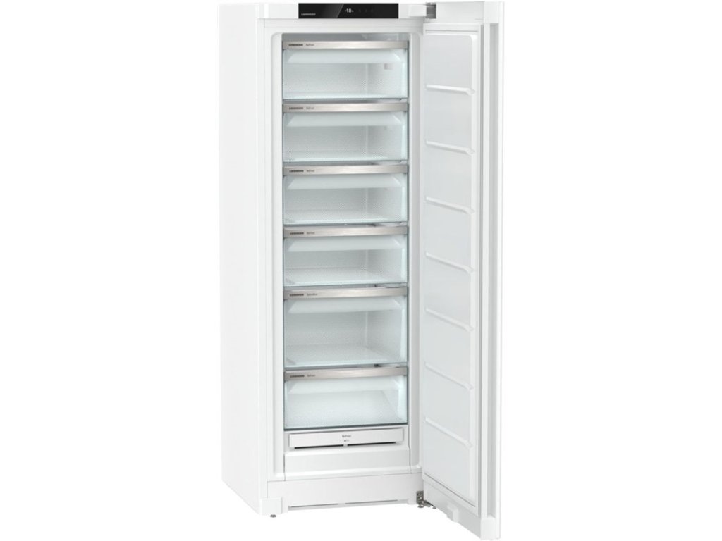 Elegantné zapustené madlo podporuje čistý a moderný dizajn a zároveň šetrí miesto pri otváraní dverí. Nadčasové biele prevedenie sa ľahko prispôsobí rôznym typom interiérov. Táto voľne stojaca mraznička spája moderné technológie, praktické funkcie a vysoký komfort každodenného používania, vďaka čomu je ideálnou voľbou pre náročných používateľov.