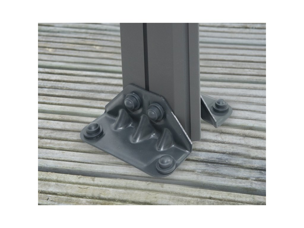 Strešnú časť tvoria dvojkomôrkové polykarbonátové panely s hrúbkou 6 mm, ktoré sú prakticky nezničiteľné. Spoľahlivo chránia pred dažďom, krúpami, snehom a zároveň účinne filtrujú škodlivé UV žiarenie. Sivý odtieň panelov prepúšťa dostatok prirodzeného svetla počas zamračených dní a zároveň vytvára príjemný tieň pri jasnom slnečnom počasí.