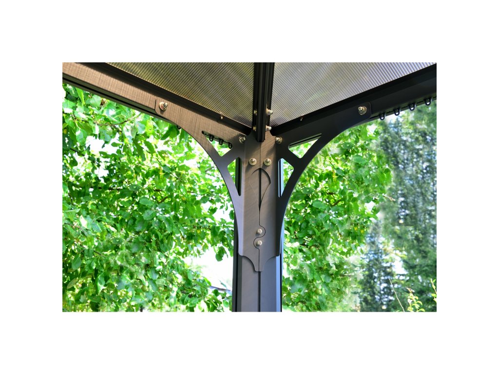 Konštrukcia altánu je navrhnutá s dôrazom na maximálnu pevnosť, dlhú životnosť a nulovú údržbu. Tvorí ju zosilnený rám z hliníkových profilov doplnený o pozinkované oceľové spojovacie články, vďaka čomu je altán odolný voči korózii a stabilný aj pri silnom vetre či snežení.